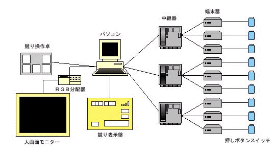 | 競りの進行を正確にまたスムーズに行う為にパーソナルコンピュータを使用した自動競りシステムです。 購買人は価格表示された表示盤を見ながら、ボタンを押すことにより簡単に競りに参加できます。 現物だけでなく画像を使用した競りも可能ですので、車のような大きな物でも少しのスペースで競りが行えます。 専用機並の機能を市販のパーソナルコンピュータを核に実現する為、低価格でお客様の要求にあったシステム構築、拡張が可能です。 |